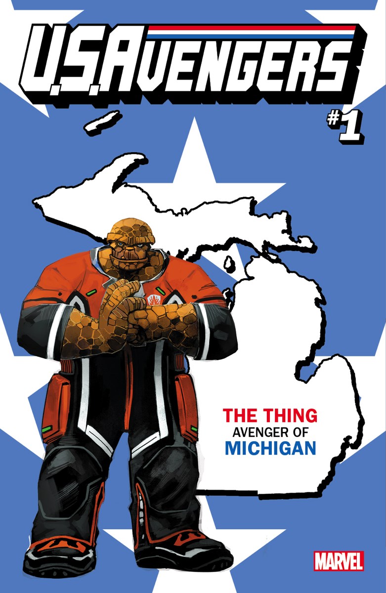 It's U.S.Avengers and the first issue arrives with a variant cover for every state as well as a few more covers that all spotlight an individual star from the Marvel Universe.