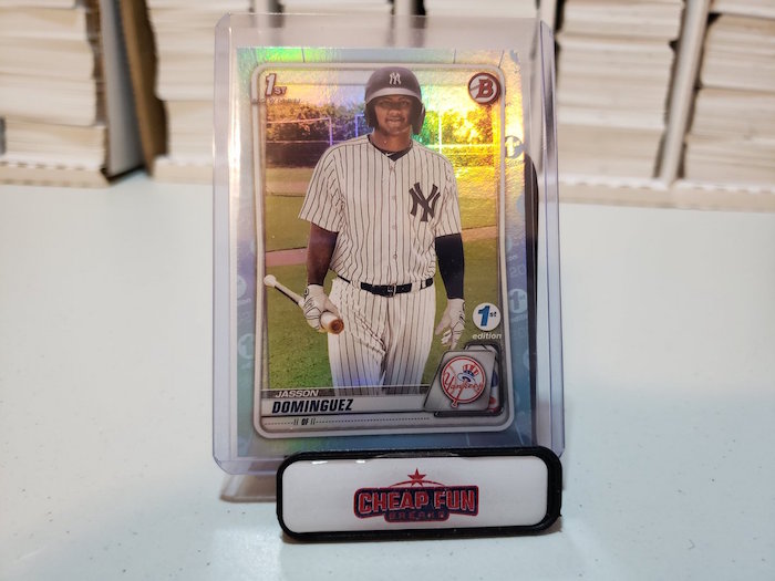 Circumstances of why 2020 Bowman 1st Edition cards exist are a bummer -- the COVID-19 pandemic delayed the arrival of the standard release that's an annual collecting staple of many -- but this simpler logo-enhanced version of that set is starting out of the gates perhaps hotter than anyone could have imagined. Why? Prospectors and New York Yankees fans want to get their hands on the first MLB cards of a potential future star in the first prospect release of the year.
