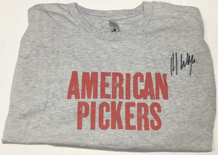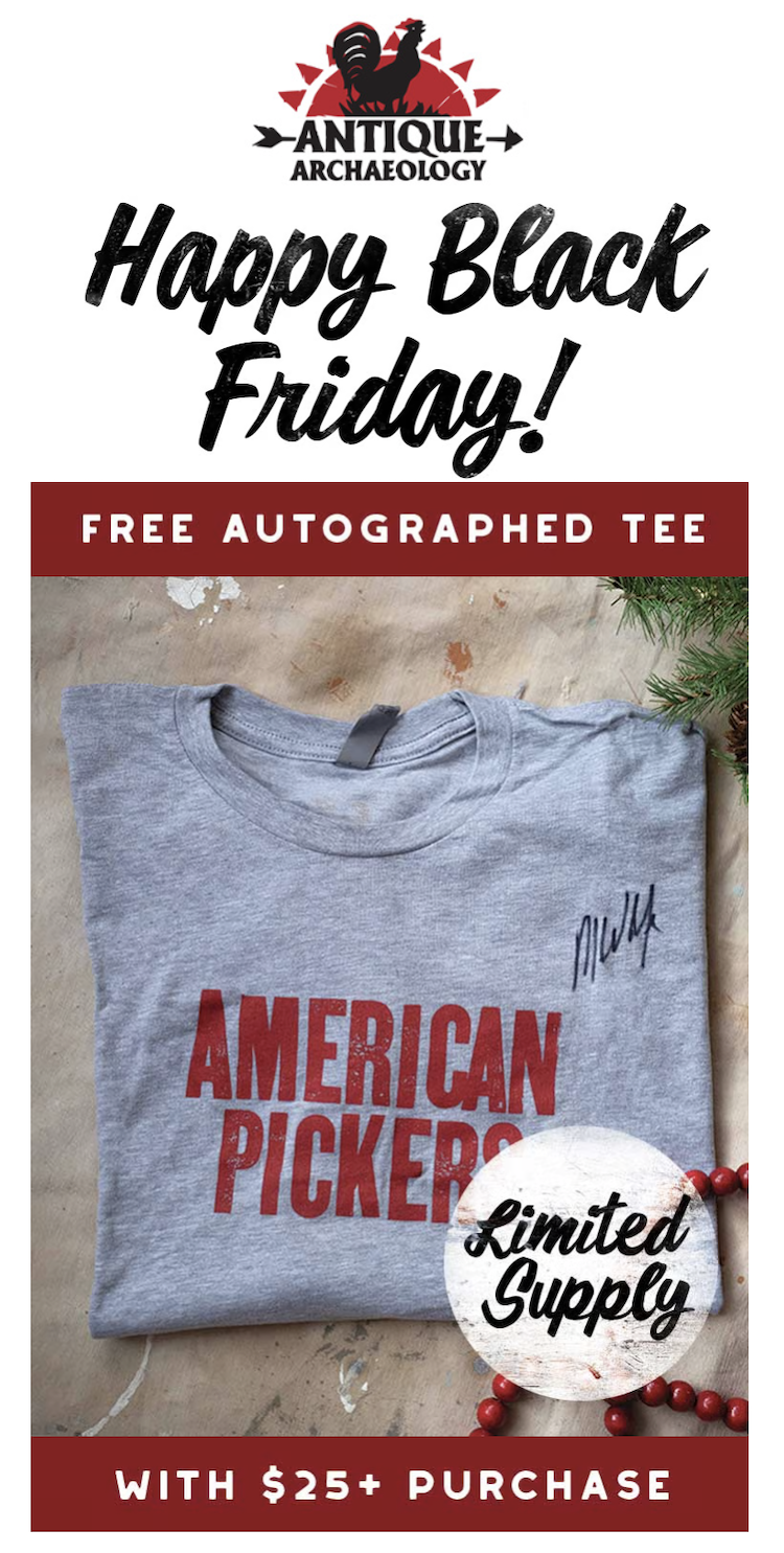 Now ... why did I bite? A Black Friday deal. With a $25 purchase off of their site, one could land an American Pickers shirt signed by Mike Wolfe as a bonus item. I threw in a $2 shop pin to get me to the amount and got the shirt.