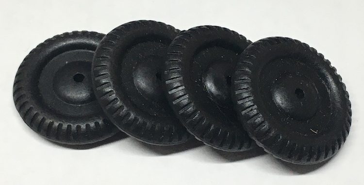 Fourth ... A set of four vintage tin toy car tires. (I think ... if these are originals they could sell for a decent amount in some cases. These are clean and unused plastic or similar material that probably broke often back in the day.)
