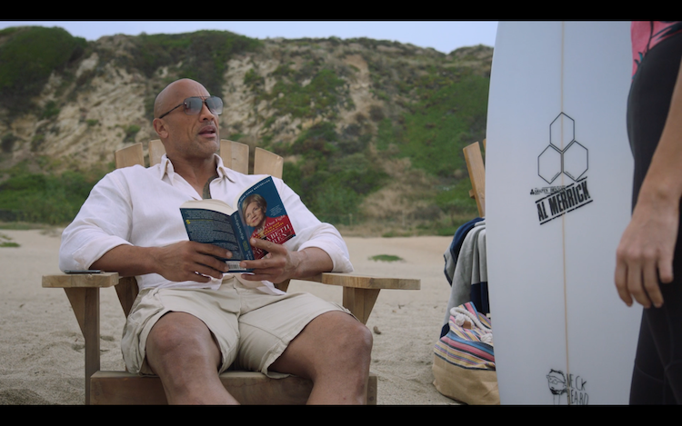 What is it? It's the opening-credits scene for the fifth season of Ballers and it had player-turned-agent-turned-businessman Spencer Strasmore (aka Dwayne "The Rock" Johnson) reading a copy of Elizabeth Warren's 2017 book This Fight is Our Fight as he sat on the beach in the first episode. It all takes place quickly and Strasmore's down-time is interrupted first by his girlfriend (Arielle Kebbel) asking him why he never goes into the ocean -- then that's interrupted by a phone call from Bossman (aka the Ballers-world owner of the Dallas Cowboys) before he walks off down the shoreline to chat. The scene isn't about a paperback with tattered edges at all, really -- it's about the mystery of the water, what Strasmore might be hiding -- but that's how the book's brief on-screen life comes to an end.
