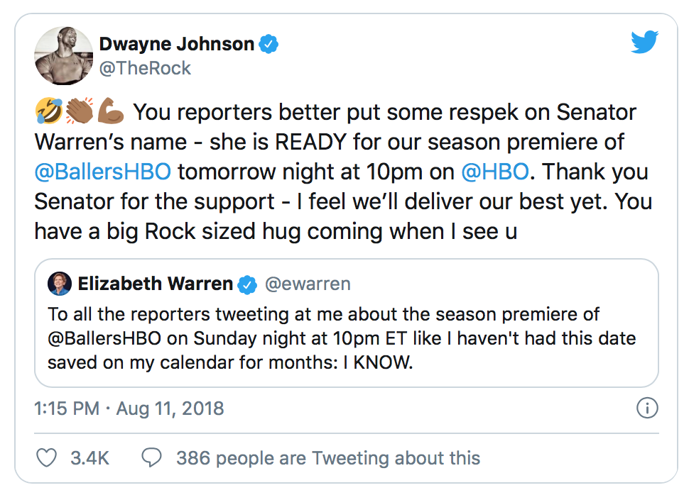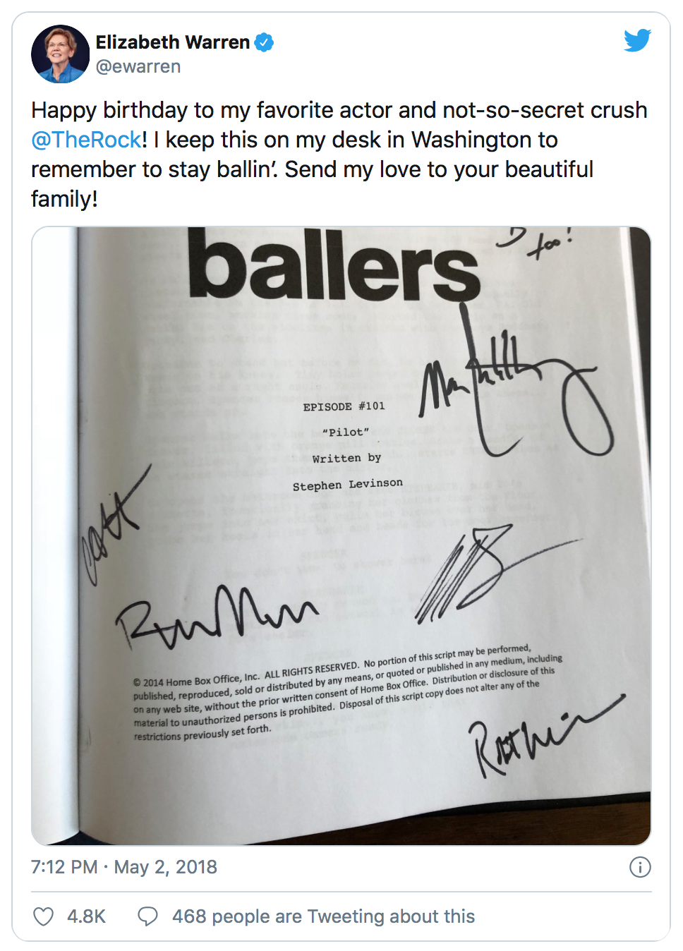 So, about The Rock's Elizabeth Warren book from Ballers ...