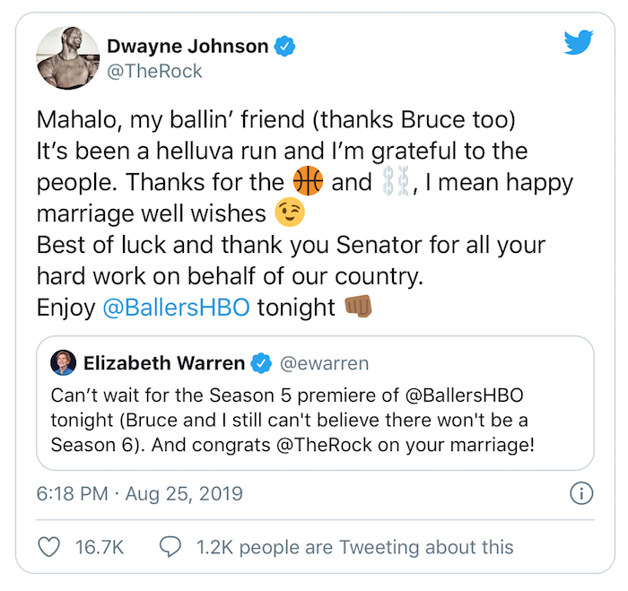 SPIN: The Rock Gives Elizabeth Warren a Cute Shoutout on Ballers
