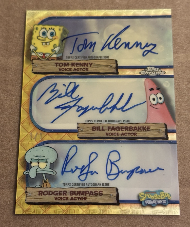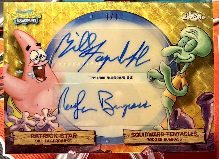 So far, there have been 14 Superfractor sales of $10,000 or more -- most not even autographed -- and that should fare well for what is arguably the top Super to have from the set, the solo SpongeBob Superfractor autograph seen up top.