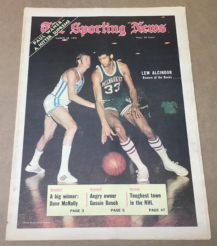 The Item: Lew Alcindor (Kareem Abdul-Jabbar) -- The Sporting News, March 28, 1970
