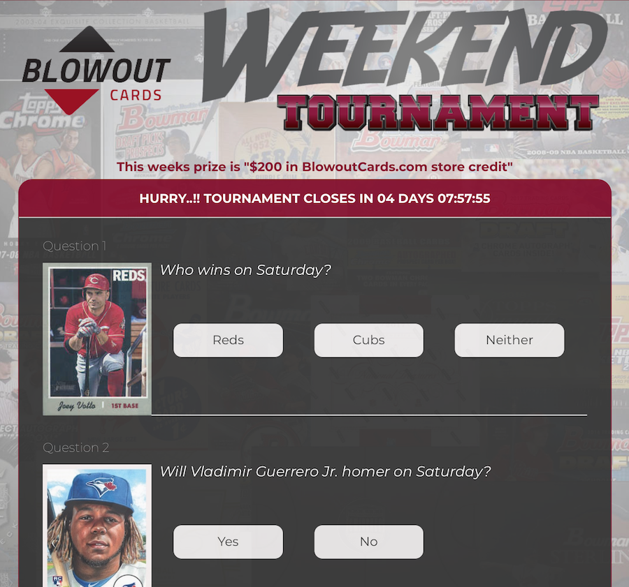 Blowout Cards' hot spot for your shot at free stuff -- store credit, boxes, memorabilia and other prizes -- is in its 22nd week and the prize is $200 in Blowout store credit. And, again, nobody has been perfect in the history of the event ... will you be the first?