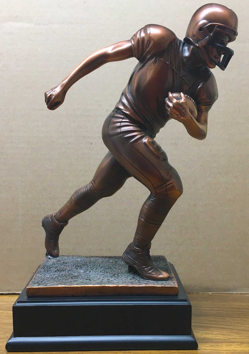 Now, why did I have to do research? Well, because nobody's perfect. The trophy I landed above is a meaty 13-inch specimen made of wood and what seems like some solid bronze-ish material that's impressively dense and truly heavy. But, it's actually not the trophy that I had set my eyes on first and photo-matched to the show before buying.