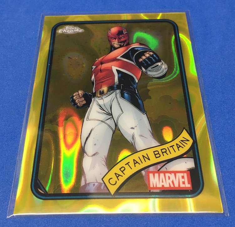 The Card: Captain Britain 2025 Topps Chrome Marvel Comics Yellow Lava Refractor