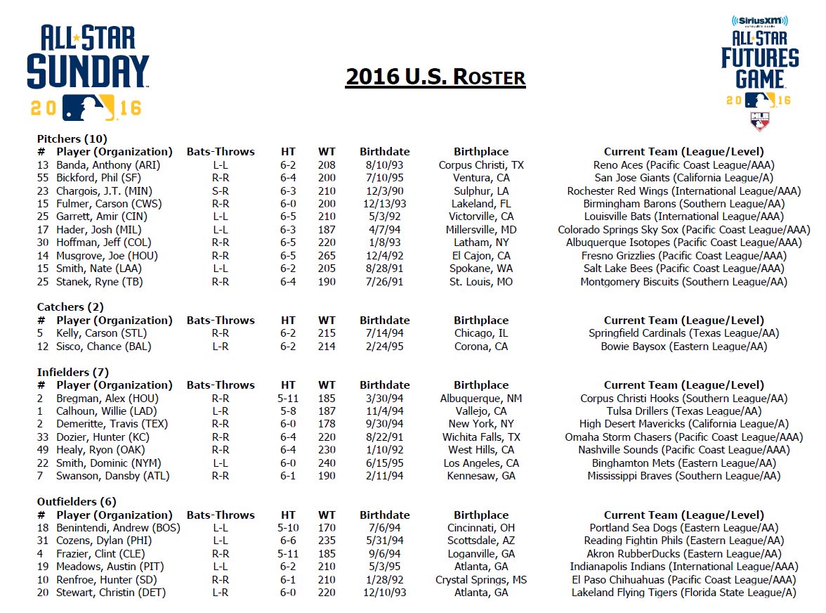Who’ll be playing in the 2016 SiriusXM All-Star Futures Game?